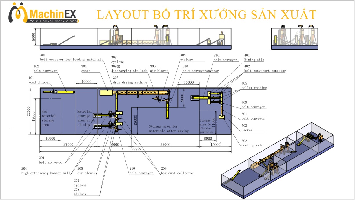 Công ty CP Machinex Việt Nam chuyên sản xuất bộ thiết bị đúc nhiên liệu viên sinh khối hoàn chỉnh.Công ty có thể cung cấp cho khách hàng bộ dây chuyền sản xuất viên nhiên liệu sinh khối hoàn chỉnh sử dụng gỗ tròn, mùn cưa, phoi bào, v.v. làm nguyên liệu thô;dây chuyền sản xuất sinh khối sử dụng khuôn mẫu xây dựng, phế liệu chế biến gỗ... làm nguyên liệu Dây chuyền sản xuất viên viên; Dây chuyền sản xuất viên sinh khối sử dụng rơm ngô, rơm lúa mì, rơm rạ... làm nguyên liệu; Dây chuyền sản xuất viên sinh khối sử dụng vỏ trái cây, bã bã, cọ... làm nguyên liệu thô, chất thải cây trồng, bùn, than, v.v. Một bộ dây chuyền sản xuất tạo hạt sinh khối hoàn chỉnh với phoi làm nguyên liệu thô, các giải pháp thiết bị hoàn chỉnh khác nhau được thiết kế riêng cho khách hàng để đáp ứng các nhu cầu khác nhau của từng khách hàng.