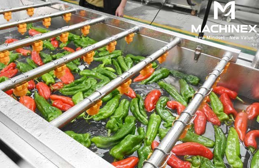 Hình ảnh: Dây chuyền rửa trái cây công nghiệp Machinex – giải pháp làm sạch nông sản hiện đại
