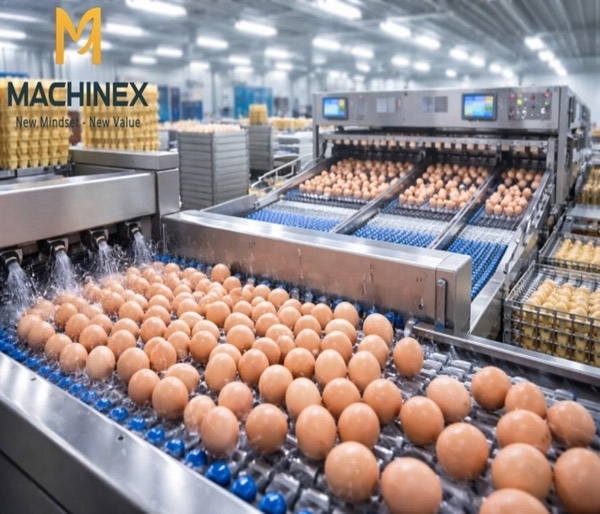 Công ty cổ phần Machinex Việt Nam cung cấp các dây chuyền xử lý trứng hiện đại, được thiết kế theo tiêu chuẩn vệ sinh thực phẩm, đảm bảo hoạt động ổn định, tiết kiệm nhân công và nâng cao giá trị sản phẩm trứng trên thị trường.