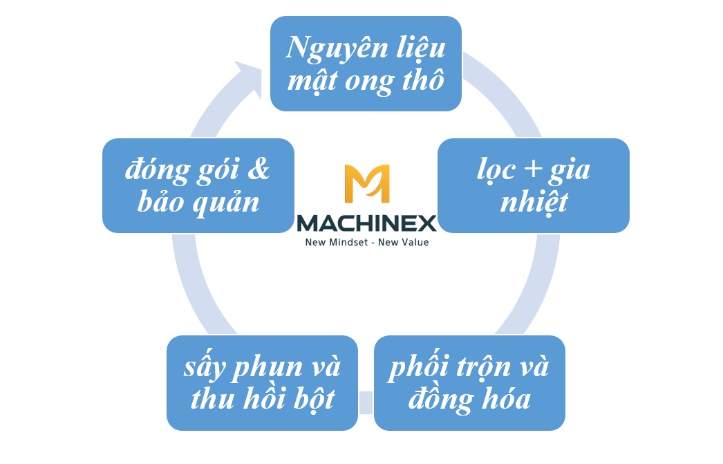 Trong những năm gần đây, nhu cầu sử dụng bột mật ong hòa tan ngày càng tăng do tính tiện lợi, dễ bảo quản, hương vị tự nhiên và giá trị dinh dưỡng cao. Đáp ứng xu hướng đó, Công ty Cổ phần Machinex Việt Nam đã nghiên cứu và chế tạo thành công dây chuyền sản xuất bột mật ong hòa tan với công nghệ tiên tiến, quy trình khép kín, đảm bảo chất lượng sản phẩm đạt tiêu chuẩn xuất khẩu.