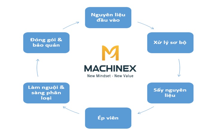 Hệ thống dây chuyền được Machinex phát triển trên cơ sở công nghệ tiên tiến, đảm bảo sản xuất viên nén gỗ đạt tiêu chuẩn xuất khẩu châu Âu, Nhật Bản, Hàn Quốc và nhiều thị trường khó tính khác.