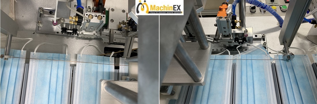Dây quai được một hệ thống cuộn cấp độc lập, cắt và hàn 2 bên cùng lúc. Với loại khẩu trang có bao viền, viền 2 đầu khẩu trang được gấp, luồn quai và hàn với đầu hàn siêu âm khẩu trang giúp hàn nhanh, chính xác và đảm bảo chất lượng quai đeo chắc chắn.