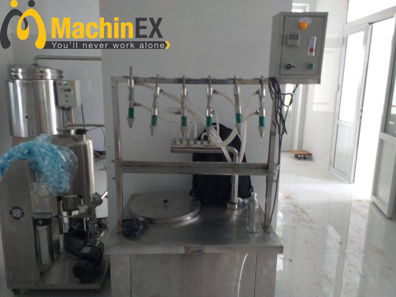 8. Máy chiết rót 6 vòi bán tự động bằng điện, định lượng timer thời gian: giúp tiết kiệm thời gian và nhân công.