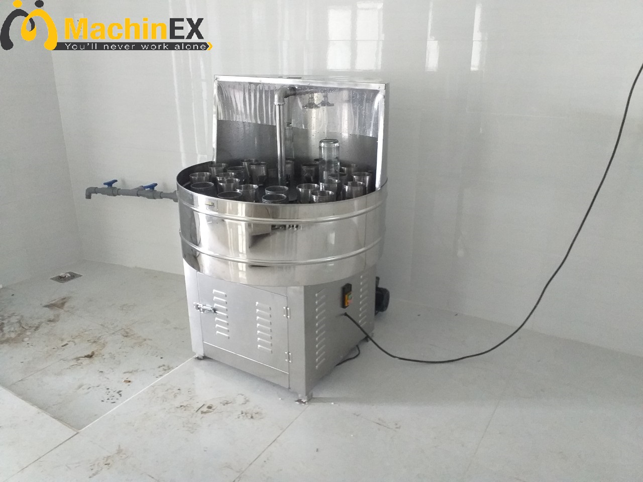7. Máy rửa chai mâm xoay 24 vòi: dùng để rửa chai trước khi qua chiết rót.