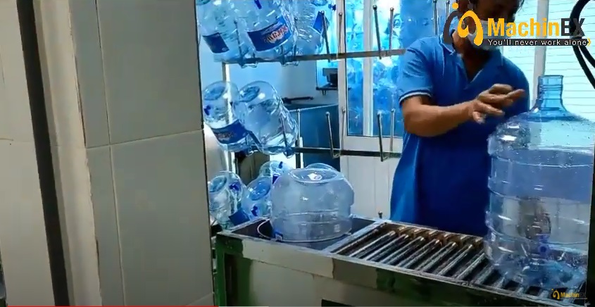 Công nhân sẽ dùng tay đặt miệng bình vào vòi rửa vs thiết kế 24 lổ phun nước liti vs áp lực nước cực lớn được bơm áp 2HP đảm nhiệm. sau khi miệng bình chạm thanh role bơm sẽ chạy tự động và phun nước vào bình đến khi bình sạch công nhân nhấc bình ra khỏi role thì bơm sẽ tự động ngắt.