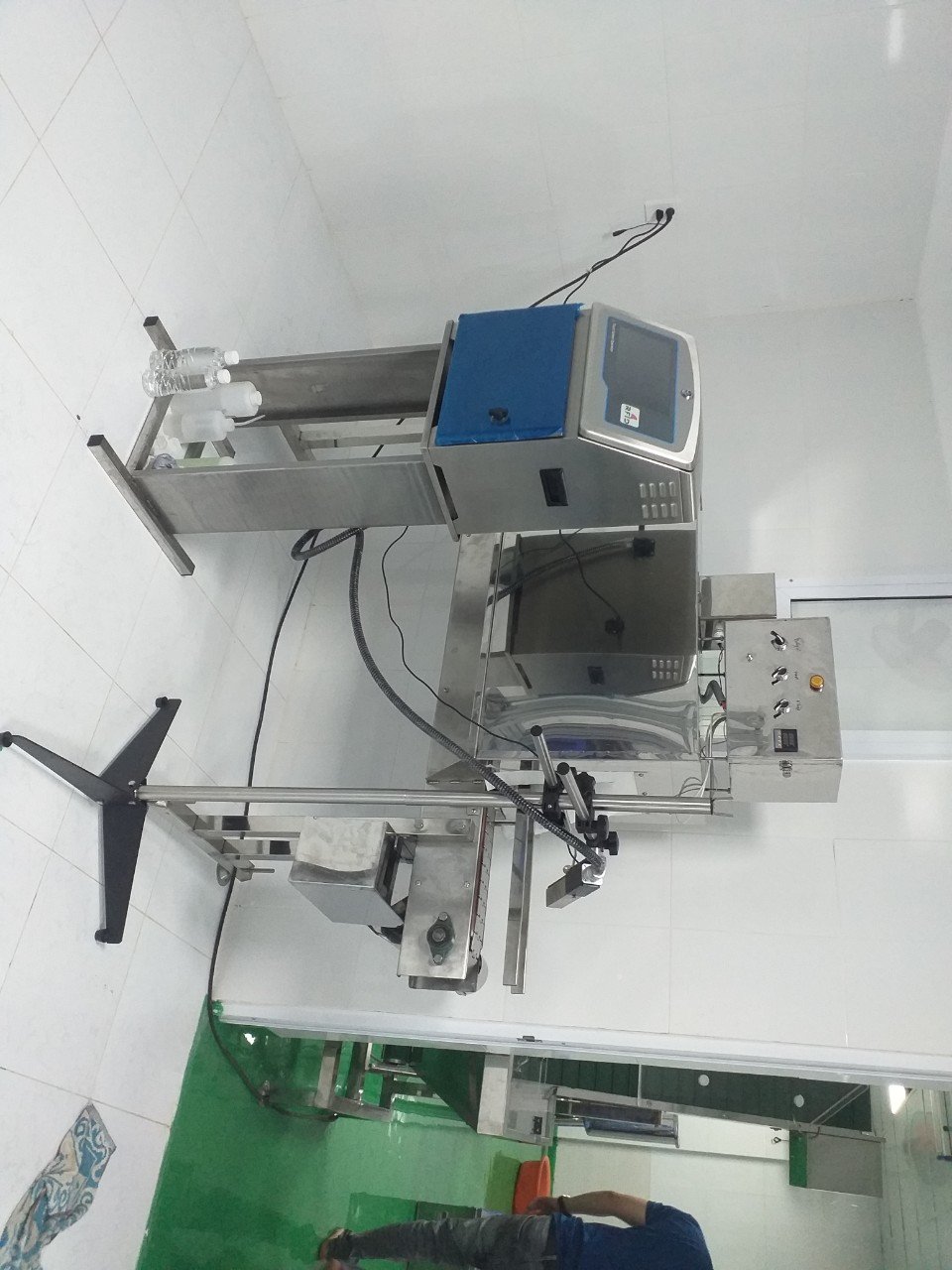 Khi chai đến vị trí chạm vào mâm cấp nắp thì đồng thời sensor cảm biến máy chiết nito cũng nhận được và trả thông tin về PLC mở khí và van chiết nito thả nito vào miệng chai bằng vòi chiết chuyên dụng toàn bộ quá trình chiết nito này xảy ra ở thời gian cực ngắn là ½ . sau đó chai sẽ xoay vòng theo mâm cấp nắp đến vị trí cấp nắp đc thực hiện bằng hệ thống cấp nắp tự động bằng băng tải và cầu cấp chuyên dụng tiện lợi chính xác, tiếp theo sẽ được 1 ben đóng giữ nắp cố định vào miệng chai để dẫn đến đầu xoáy nắp được tiện gia công CNC chính xác 100% để xiết nắp 1 cách chính xác nhất. sau đó chai sẽ được bang tải dẫn ra khỏi cụm xoáy nắp dẫn đến máy indate ngày tháng tự động sau khi chai chạy qua sensor cảm biến của máy indate thì vòi phun in sẽ phun mực in date ngày tháng lên vị trí thân chai mình cài đặt trước. sau đó chai thành phẩm sẽ được dẫn vào mâm thu chai thành phẩm bằng kính cường lực 10 li để giữ chai không bị rơi dỗ móp méo ảnh hưởng sp và công nhân có thời gian để cho vào thùng đóng kiện thành phẩm lưu kho