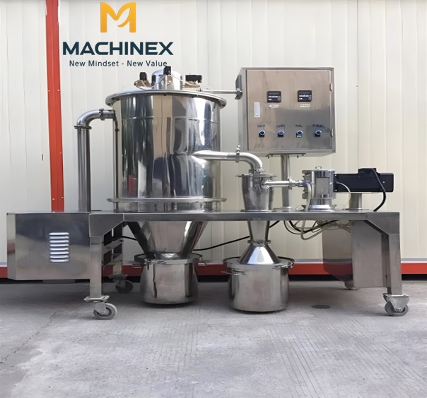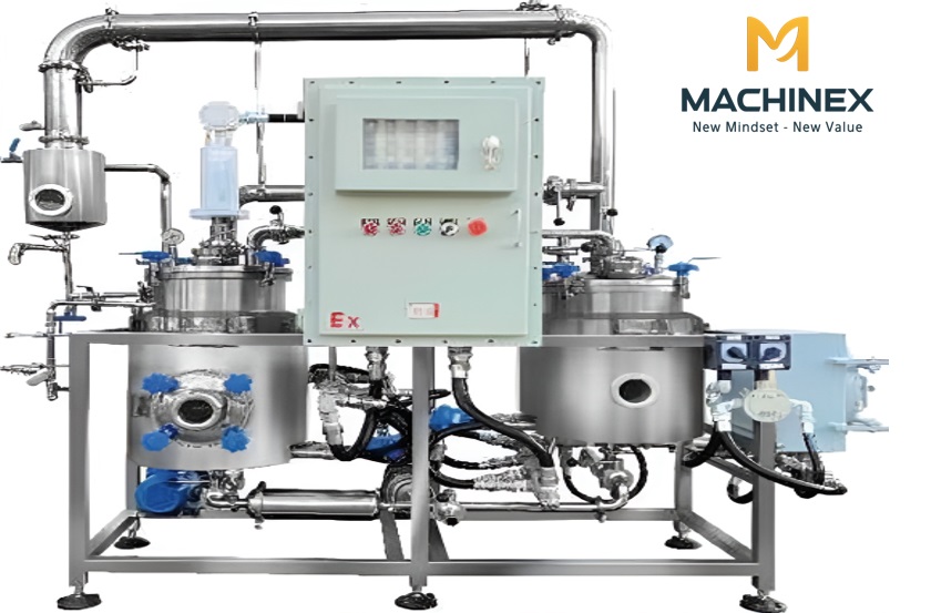 Machinex là đơn vị chuyên cung cấp thiết bị công nghiệp cho ngành dược – thực phẩm – mỹ phẩm, trong đó dòng máy cô đặc chân không được xem là một trong những sản phẩm chiến lược. Thiết bị vận hành dưới áp suất thấp, giúp nước hoặc dung môi bay hơi ở nhiệt độ thấp hơn đáng kể so với phương pháp đun trực tiếp.