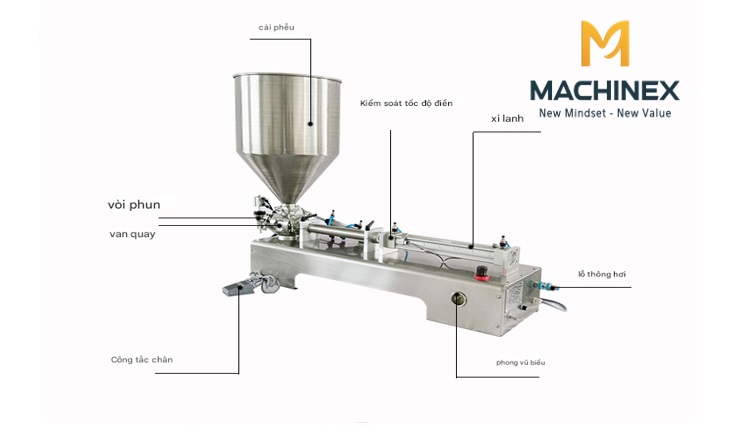 Máy chiết rót Machinex được chế tạo bằng inox 304/316 cao cấp đạt tiêu chuẩn an toàn thực phẩm.