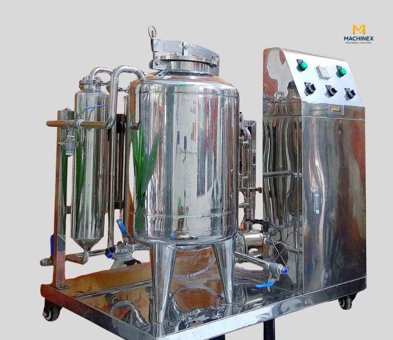 - Đặc điểm: Máy có dung tích lớn, tích hợp hệ thống điều khiển tự động hóa cao, có thể xử lý hàng trăm, thậm chí hàng nghìn lít rượu mỗi lần. Vỏ máy được làm bằng inox 304 không gỉ, đảm bảo vệ sinh và độ bền cao.