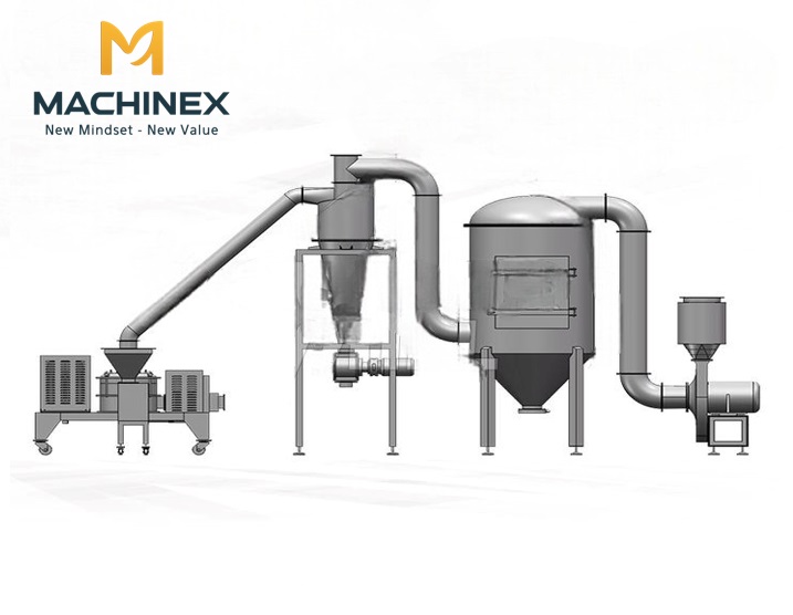 Máy nghiền bột siêu mịn Machinex là thiết bị sử dụng tốc độ quay cao của dao – búa nghiền kết hợp dòng khí xoáy để phá vỡ cấu trúc nguyên liệu thành các hạt cực nhỏ, có kích thước chỉ từ 10 – 120 micron.
