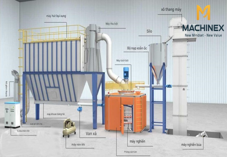 Hình ảnh: Cấu tạo chi tiết của máy nghiền bột siêu mịn Machinex