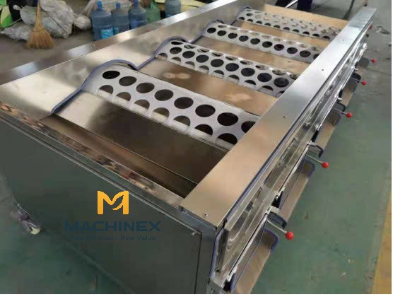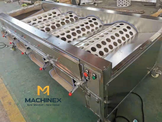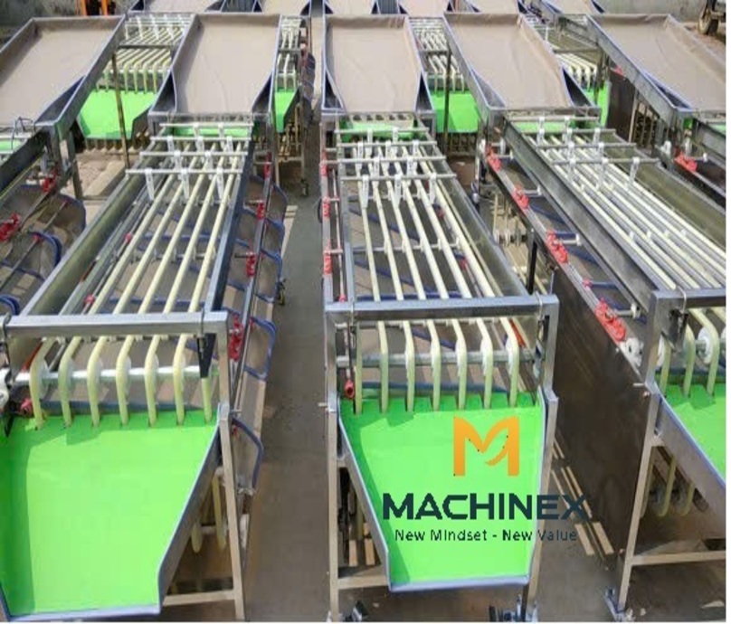 - Vận hành hiệu quả: Trái cây di chuyển nhẹ nhàng theo trọng lực đến các cổng xả dốc, giúp phân loại theo kích thước một cách nhanh chóng, êm dịu, giảm hư hỏng.