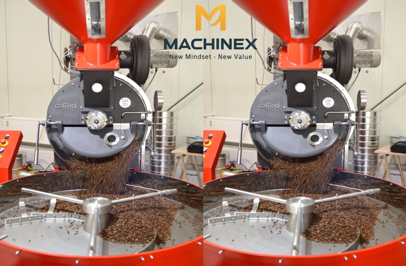 Đặc biệt, máy được Machinex phát triển dựa trên công nghệ rang hỗn hợp (hot air + drum), giúp hạt cà phê chín đều từ trong ra ngoài, hạn chế cháy xém và tăng hương thơm tự nhiên.