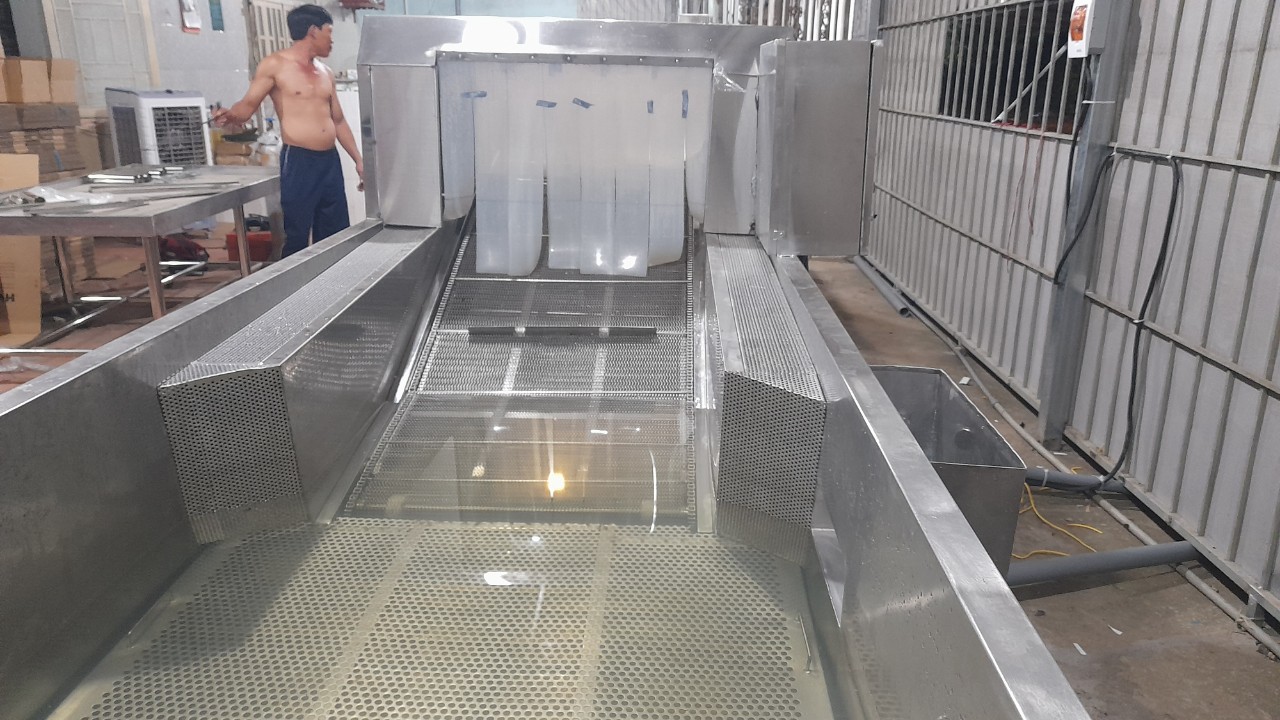- Vật liệu chế tạo hoàn toàn Inox SUS 304 cao cấp đảm bảo đạt chuẩn vệ sinh an toàn thực phẩm, kết cấu chắc chắn cũng như tính thẩm mỹ cao nhất cho mọi sản phẩm dây chuyền.