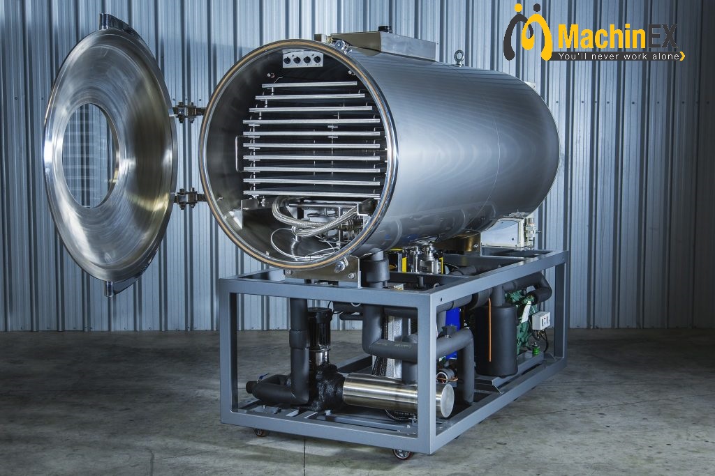 Máy sấy đông khô (Sấy thăng hoa) Machinex Việt Nam sản xuất chế tạo đầy đủ mọi công suất từ nhỏ vừa cho gia đình 5kg/mẻ đến qui mô công nghiệp 100 - 200 500 - 1 tấn ,... nguyên liệu/mẻ.