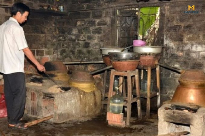 - Nguyên lý hoạt động: Nấu rượu thủ công sử dụng nguồn nhiệt từ lửa củi, than hoặc trấu để làm nóng bỗng rượu. Hơi rượu bốc lên, đi qua hệ thống ống dẫn và ngưng tụ lại thành rượu thành phẩm.