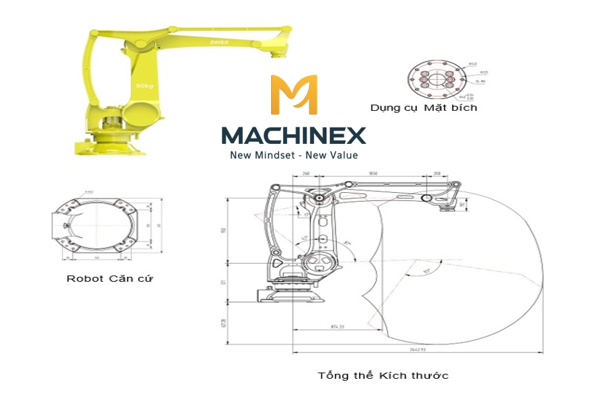 Robot công nghiệp 4 trục tải trọng lớn do Machinex Việt Nam cung cấp được thiết kế đồng bộ với các bộ phận chính sau: