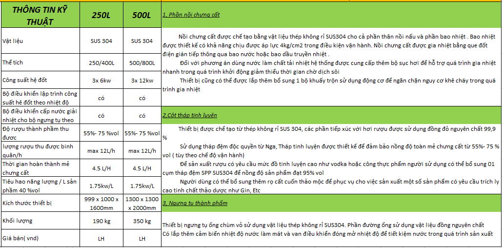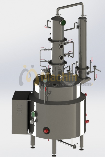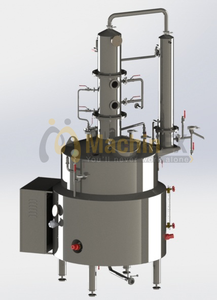 Thiết bị chưng cất hồi lưu 2 cấp - chóp inox được chế tạo bằng vật liệu thép không rỉ SUS304 cho cả phần thân nồi nấu và phần bao nhiệt. Bao nhiệt được thiết kế có khả năng chịu được áp lực 4kg/cm2 trong điều kiện vận hành. Thiết bị chưng cất được gia nhiệt bằng điện trở đốt điện gián tiếp thông qua bao nước hoặc bao dầu truyền nhiệt.